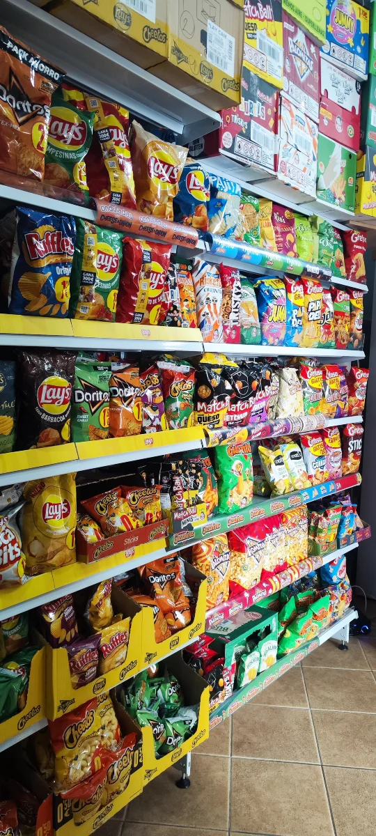 Desde los clásicos chocolates que endulzan tu tarde, hasta los snacks salados más crocantes para compartir (o no 😉), cada producto en nuestros estantes está pensado para satisfacer tus antojos con calidad y frescura.